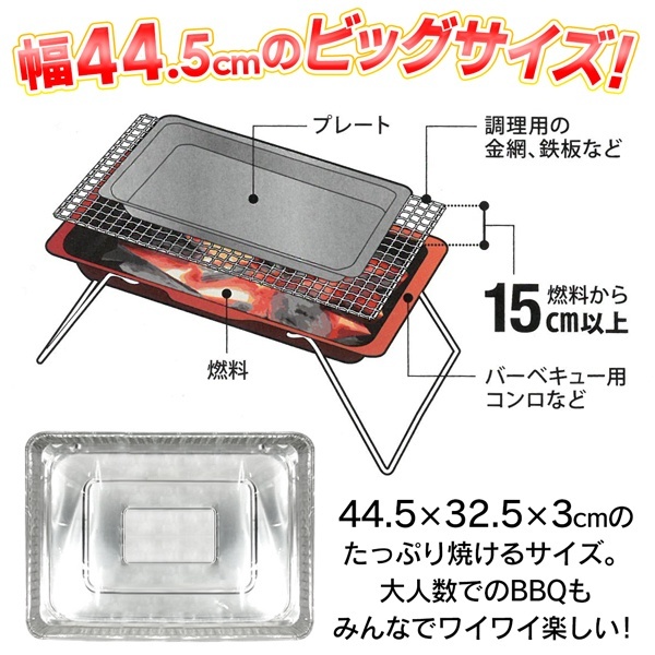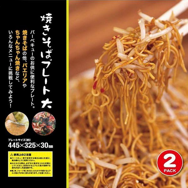 バーベキューのお供に!「やきそばプレート」! ★ 調理に便利な大サイズ! ★ ★ お得な2枚セット! ★ 網しかないけど、炒め物を楽しみたい・・・ みんな大好き焼きそばを作りたい・・・ そんなときにはこれ!焼きそばプレート! 網目から具材が落ちる、なんて心配はもうありません♪ 鉄板のようにしっかり炒め料理ができちゃいます! アルミ製の使い切りプレートで、使用後は捨てることができます。 洗って保管する手間がありません。 焼きそば以外にも、パエリアやちゃんちゃん焼きなどいろんなメニューに挑戦してみよう♪ BBQやアウトドア、キャンプに最適!グランピングやソロキャンプでも大活躍! |