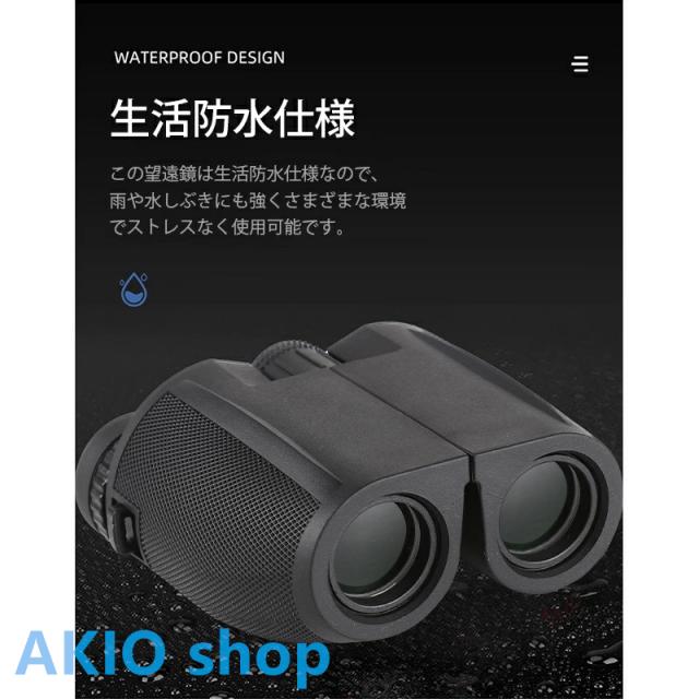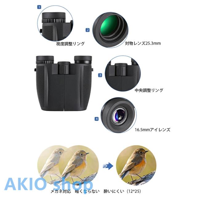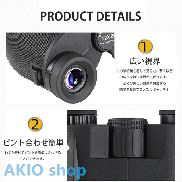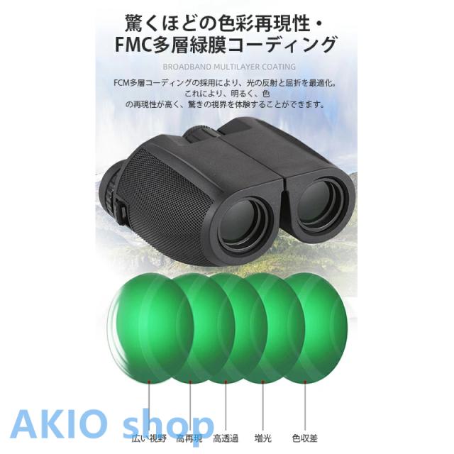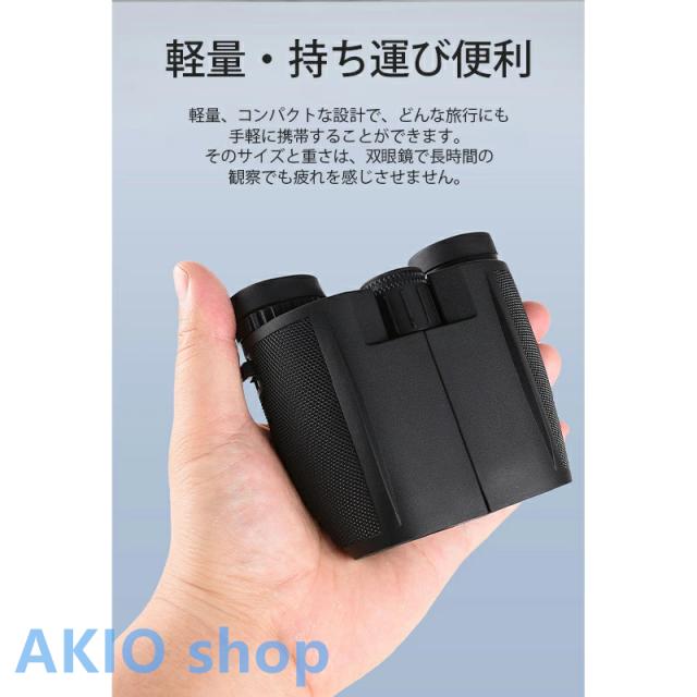 【超高清小型軽量の双眼鏡】 透過率をできるだけ上げる高倍率レンズを採用致しました。25.3mmの対物レンズが大きいほど集光力があり、解像力と明るさが向上、それにより、きれいにはっきりくっきり見ることが可能になります。双眼鏡は安定性を確保するために独自の構造設計を採用、日本人の手に合わせたコンパクト設計で、最大の快適さを提供するためのエルゴノミクスデザインの丈夫なフレーム、長時間使っても疲れない。超軽量、折りたたみ式のデザイン、貯え、運ぶことが容易です。