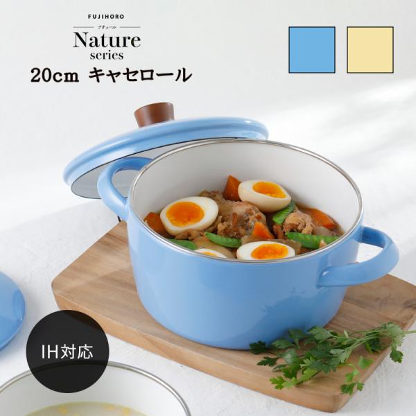 【 富士ホーロー 公認商品 】両手鍋 20cm IH対応 キャセロール ih 北欧 富士ホーロー Nature(ナチュール) 20cm キャセロール NA-20W (3.0L) IH200V オーブン 煮込み鍋 蓋付き 琺瑯 鍋