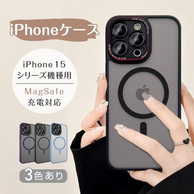 iPhone15 Pro/15 Plus/15 Pro Max 保護ケース MagSafe充電対応 ソフトフレーム PCケースカバー マグセーフ ワイヤレス充電対応