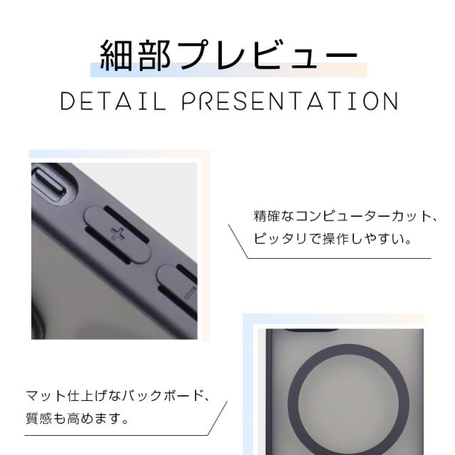 iPhone15 Pro/15 Plus/15 Pro Max 保護ケース 磁石内蔵 アイフォンケース マット仕様 疎油 防汚 撥水 指紋防止 液晶保護 カメラ保護機能