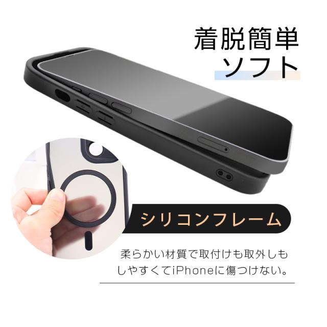 【ソフトとハードの組み合わせ】フレーム部分は柔らかくて耐衝撃力の高いシリコン素材、背面は頑丈なPC(ポリカーボネート)素材。一般的なハードコート済みのケースやクリアケースよりも硬い、擦り傷に強く、いつまでもキレイです。この2種類の素材を組み合わせることによって不意な落下や、傷からiPhoneをタフに守ります。