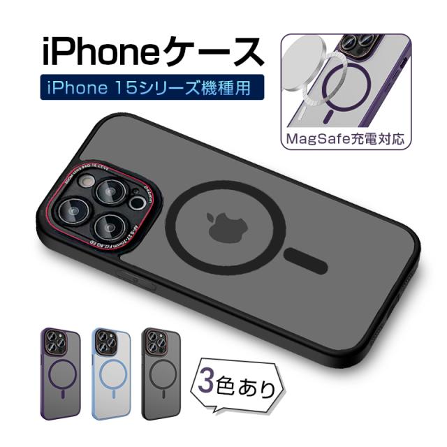 iPhone15 Pro/15 Plus/15 Pro Max 保護ケース 磁石内蔵 アイフォン 摩擦防止 耐衝撃 ストラップホール付き 軽量 背面ポリカーボネート
