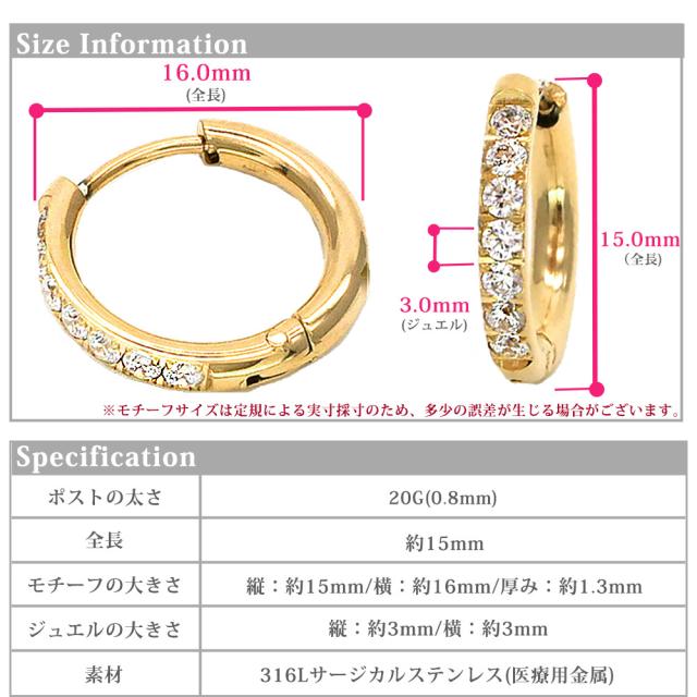 ピアス 金属アレルギー対応 ステンレスピアスジュエルフープピアス フープピアス 両耳用 316L