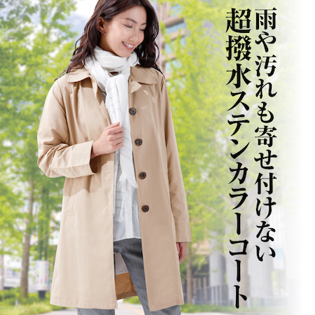 まるで普通のステンカラーコートなのに超撥水生地でおしゃれに、蒸れずに、快適雨対策!