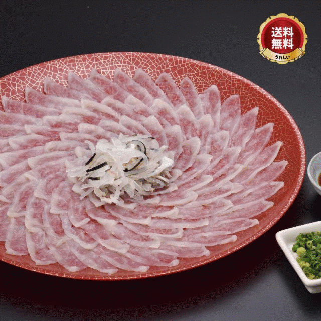 内容量:とらふぐ刺身 約150g、ふぐ皮湯引き 約80g、ポン酢、薬味