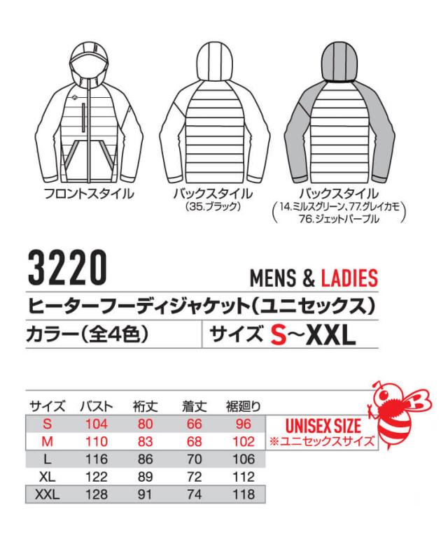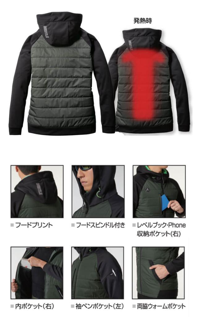 [即日発送]防寒着 バートル BURTLE サーモクラフト ヒーターフ—ディジャケット(単品) 3220 THERMOCRAFT サイズS〜XL