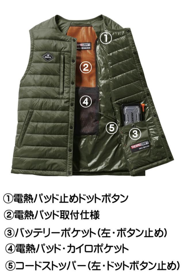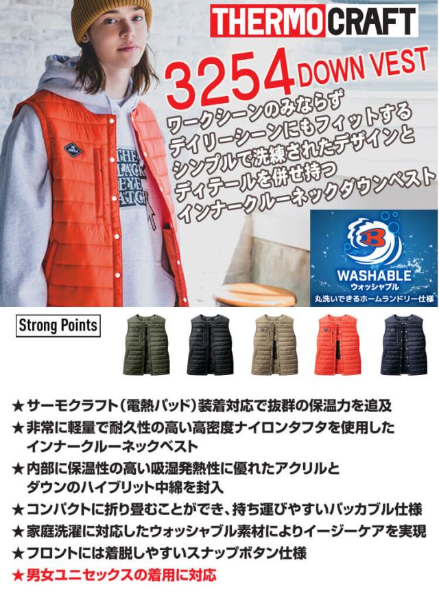 [即日発送]防寒着 バートル BURTLE サーモクラフト ヒーター ダウンベスト(単品) 3254 THERMOCRAFT サイズS〜XL