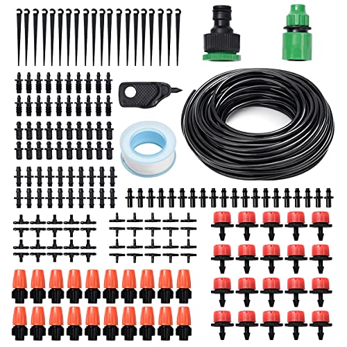 ・材質ABSから作られ、環境にやさしい、無毒、安全で耐久性があります。この灌水ホースシステムには25mホース、ドリッパー、点滴ノズル、噴霧ノズル、蛇口コネクタアクセサリー、クイックジョイントコネクタなどが含まれています。
