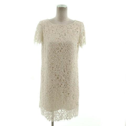 【中古】ザラウーマン ZARA WOMAN ワンピース 半袖 ミディ丈 総レース フリンジ ライトベージュ XS レディース