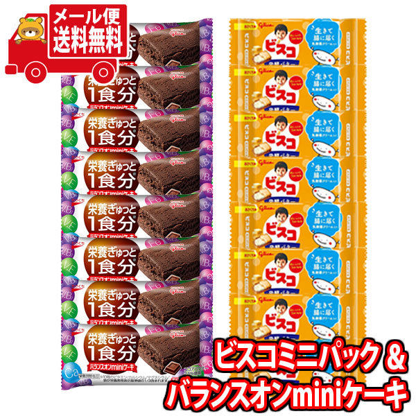 (メール便で全国送料無料) グリコ ビスコミニパック〈発酵バター〉(8コ)& バランスオンminiケーキ チョコブラウニー(8コ)(omtmb9029)【お菓子 詰め合わせ 送料無料 お試しセット 個包装 小袋 ばらまき 販促品 景品 問屋 業務用】