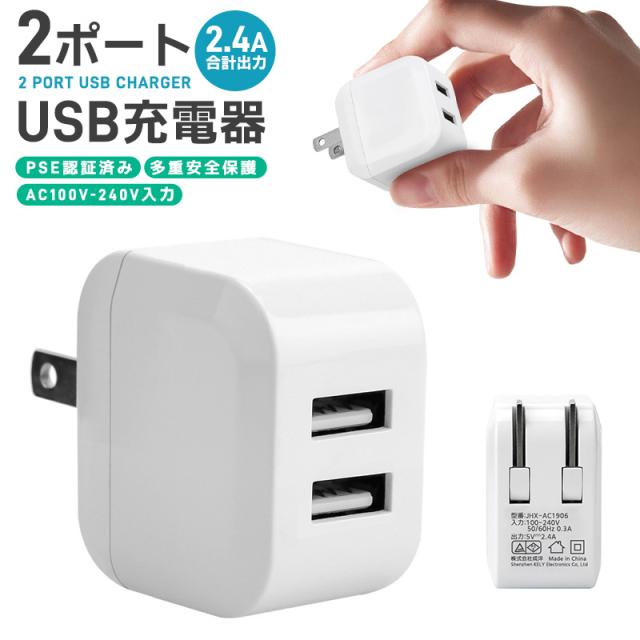 USB充電器 2ポート USB ACアダプタ 充電器 急速充電 アダプター 電源タップ 高出力 折り畳み USB コンセント タップ 軽量 コンパクト