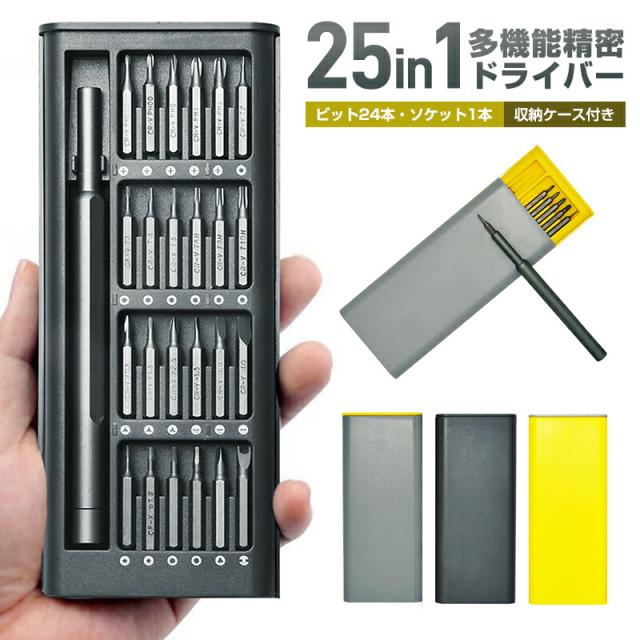 ドライバーセット 精密ドライバー トルクス 特殊 使い勝手が良い 特殊ネジ スライ ド精度 プラスチック 分解 磁性 磁気 磁石 磁力 金属 精密ドライバーセット 25in1 コンパクト ビット24種類 ソケット25in1多機能精密 ケース付き スマホ iphone 腕時計 カメラ メガネ タブレット等の修理にドライバー キット スマホ修理 プロ用 24ビット+1ホルダ スクリュードライバー トルクス Y型 三角ネジ 五角ネジ プラス マイナス 丸型 キーケース型 携帯便利 磁気 精密 パワードライバー 修理ツールキット 携帯電話 腕時計 ノートパソコン 小型電気機器用プラス 携帯電話 パソコン PC MacBook iPad iPod タブレット 時計 ロボット掃除機、ミキサー 扇風機 ドライヤー 加湿器 家電 シェーバー メガネ PS4 Xbox 任天堂Switch ゲーム機 ゲームコントローラー VRゴーグル HDD アクセサリー プリンター カメラなどの物に対応 豊富なビット数 様々な作業に対応 精密 ドライバー セット 25in1 グレー