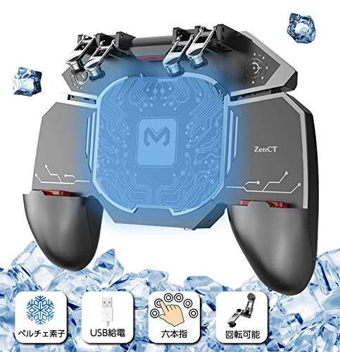 ZenCT コントローラー 6本指操作 ヒートシンク 冷却装置搭載 クリップ式 スマホ トリガー 荒野行動 PUBG Mobile フォートナイ