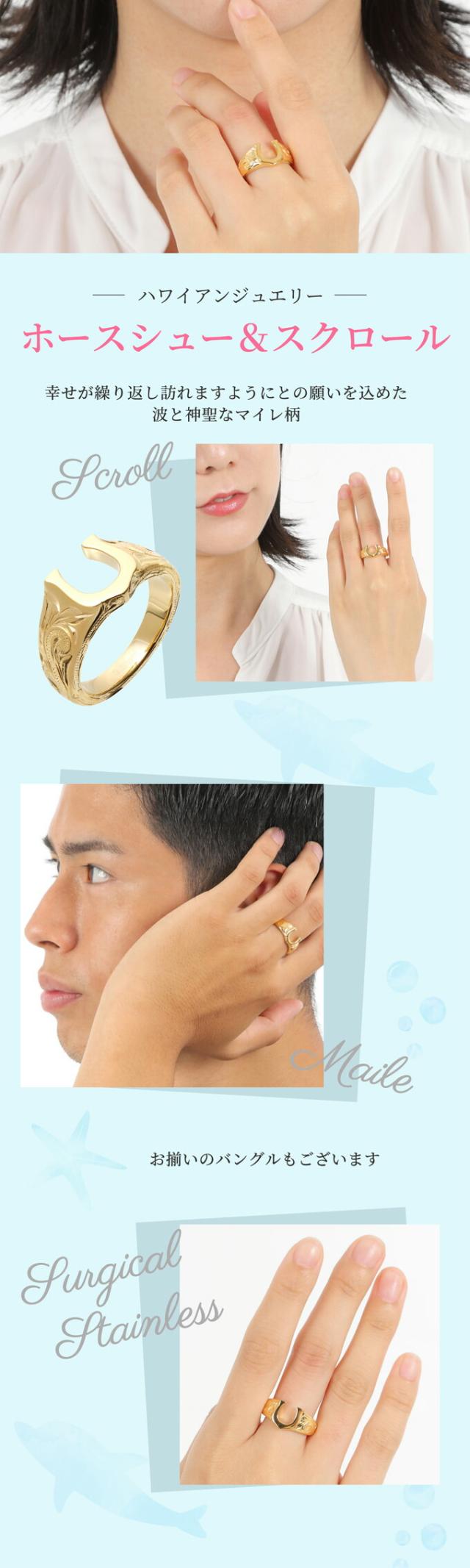 ハワイアンジュエリー リング 指輪 ペアリング ステンレス 316 幅約3ミリー約10ミリ イエローゴールド ホースシュー 馬蹄 スクロール 波 マイレ 金属アレルギー レディース ペア ギフト lmaハワイ プレゼントプレゼント