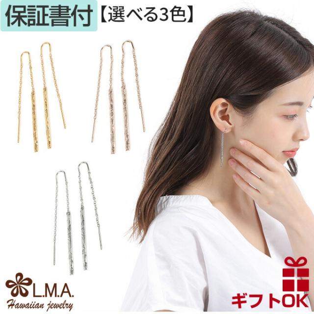 ハワイアンジュエリー ピアス アメリカンピアス サージカル ステンレス 316L 両耳用 波柄 アメリカンタイプ チェーンピアス スタッドフック プレゼント ギフト アレルギー LMA lmaハワイ 金属アレルギー 揺れる プレゼント