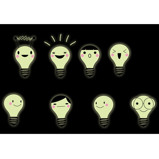 ウォールステッカー 電球 スマイル 顔入り 蓄光シール 可愛い ひらめき 小さめ 暗闇で光る ランプ 蛍光 スイッチ コンセント 机 送料無料