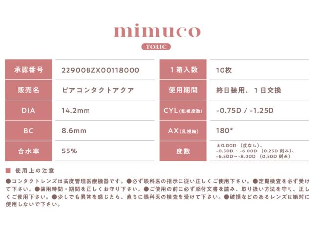 ポイント5倍 乱視用 カラコン ワンデー 度あり 1箱10枚入り mimuco ミムコ トーリック かわにしみき DIA14.2mm BC8.6 水光感 色素薄い系 高度数 ハイパー 透明感 ナチュラル 自然 ぼかしフチ 馴染む