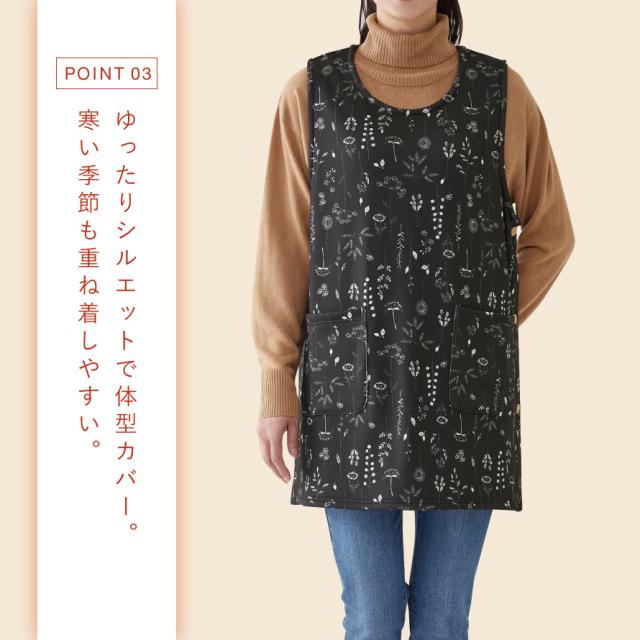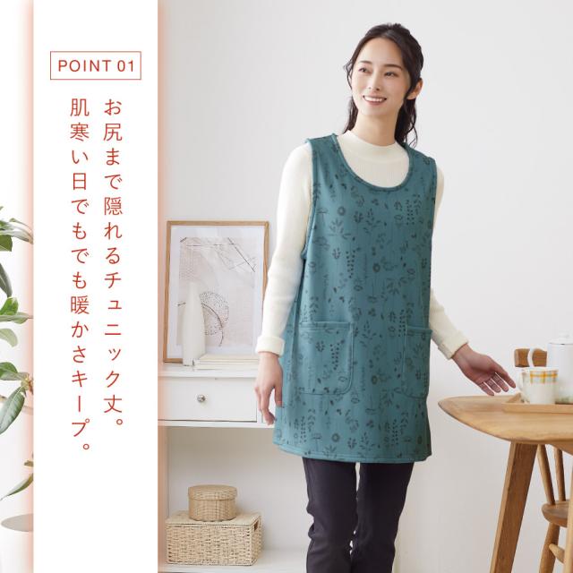 冬場の家事に、まるで毛布のようにポカポカのチュニックエプロン。保湿性のある裏シャギーでふわふわあったかい。冬場で冷えるキッチンやガーデニングなど、ポカポカで作業できます。