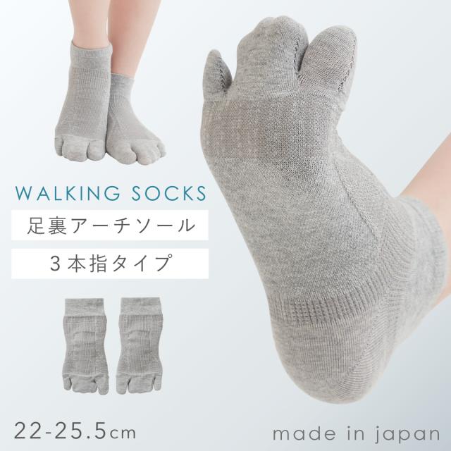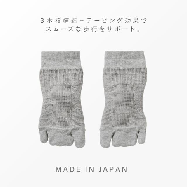 3本指,靴下,サポーター,レディース,22-25.5cm,ウォーキング,歩行,補助,安定,かかと,歩きやすい,動きやすい,薄手,薄い,履き口,ゆったり,口ゴムゆったり,足首,ゆるい,足のむくみ,伸びる,履きやすい,日本製,くつした,くつ下,ソックス,女性,大人,女性用,婦人用,婦人靴下,22cm,22センチ,23cm,23センチ,24cm,24センチ,25cm,25センチ,グレー,