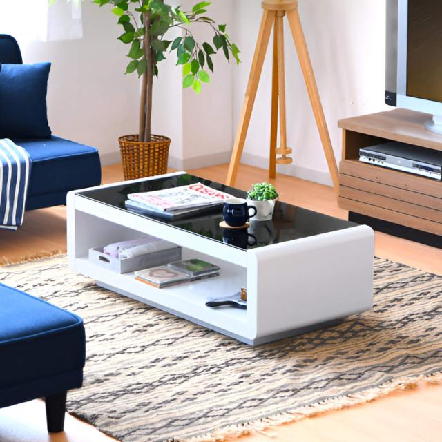 ブラックのガラス天板との組み合わせがおしゃれなリビングテーブルです。ホワイトは本体にエナメル塗装を施しており肌触りがよく、ブラウンは木目調でよりシックに。ガラス天板との相性もバッチリ。清潔感、高級感漂うテーブルでリビングの主役に。