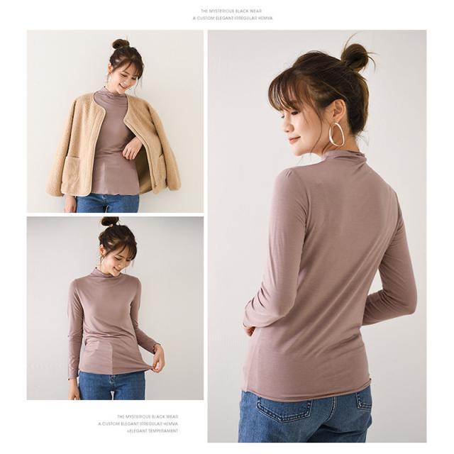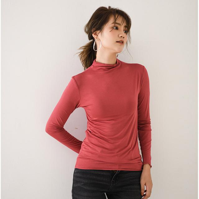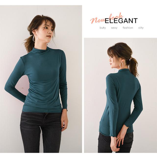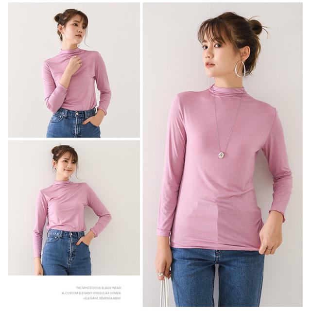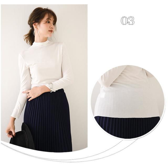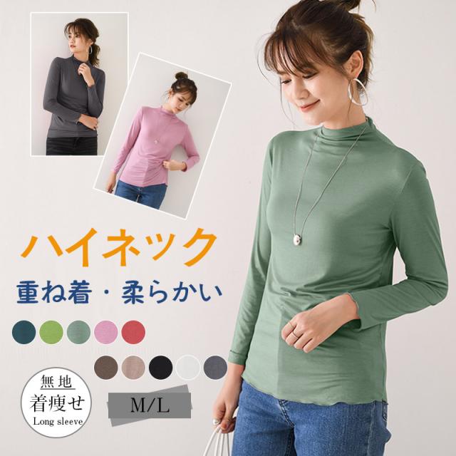 肌着 インナー カットソー レディース 長袖 ロンT トップス tシャツ レディース シンプル 無地 ハイネック 春 秋 着痩せ