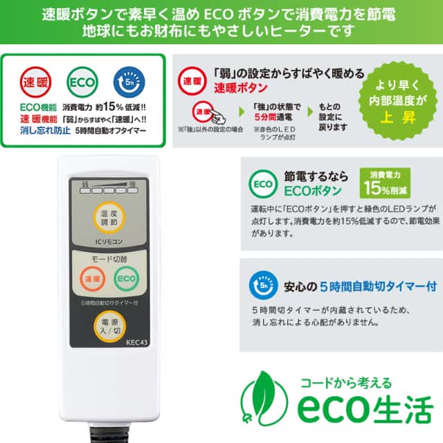 速暖ボタン・ECOボタン・自動オフタイマー機能付き