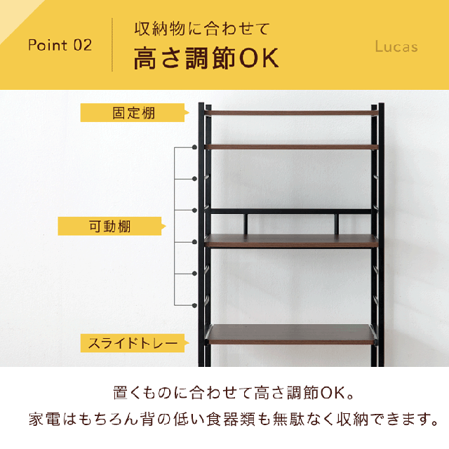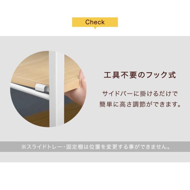 ※最上段、スライドトレーにつきましては、固定棚となっているため位置を変えることはできません。