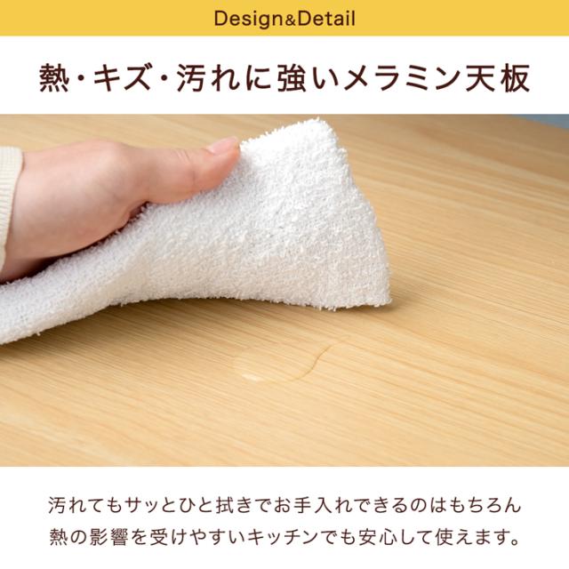 ラック部:スチール(粉体塗装)、棚板・引き出し:メラミン樹脂化粧繊維板