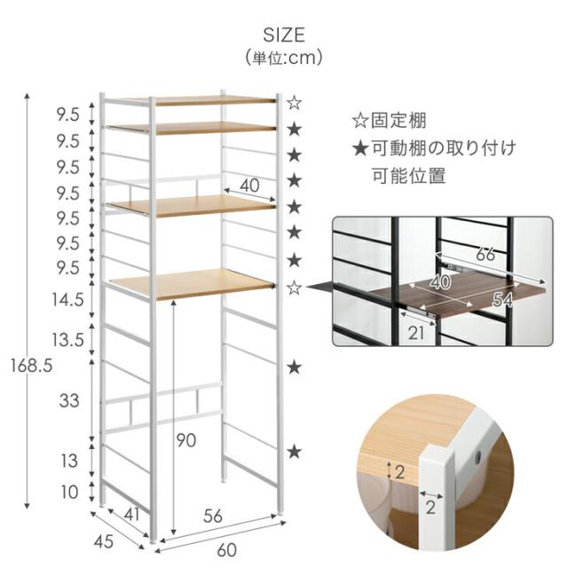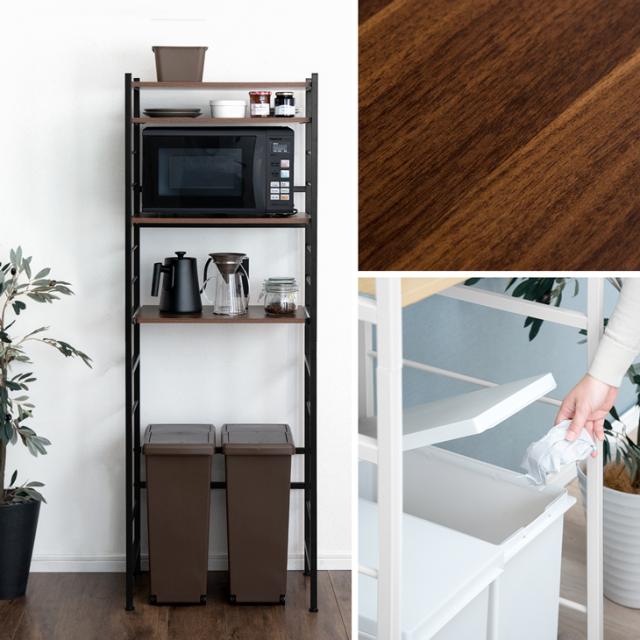 レンジラック 4段 レンジ台 高さ168.5 幅60 シンプル 木目調 電子レンジ ラック オープンラック シェルフ 収納 食器棚 キッチン スライドトレー スリムラック 隙間収納 ゴミ箱 ごみ箱