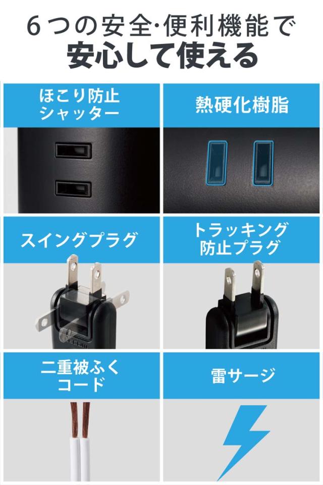 ●差込口は耐熱性に優れた熱硬化性樹脂を使用した二重構造になっており、万が一の発熱の際にも融解しにくいです。