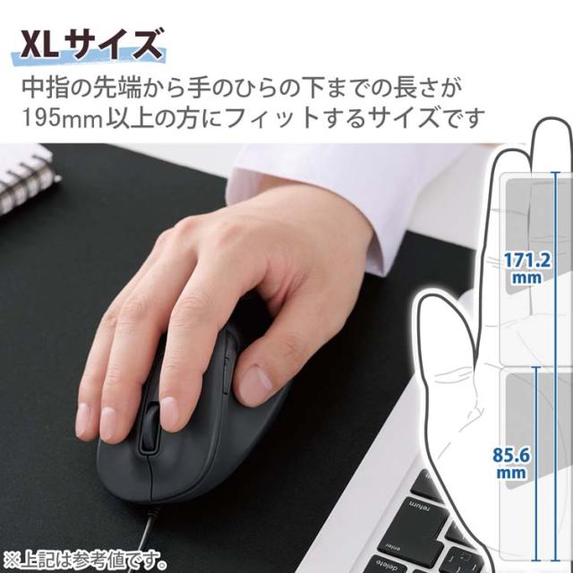 【エレコム マウス 有線 静音 5ボタン 右手専用 XLサイズ ブラックの商品詳細】