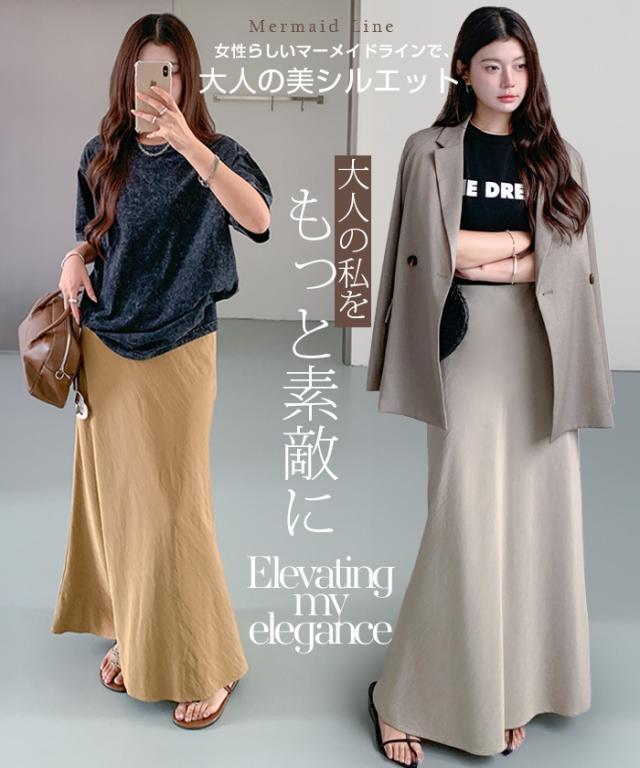 20%OFFクーポン!ロングスカート マキシ フレア サテンスカート マキシ マーメイド タイト ロング ロングスカート ロング丈 マキシ丈 きれいめ 光沢感 上品 トレンド 着痩せ ウエストゴム オフィス お呼ばれ【 サテンナロースカート】 秋新作