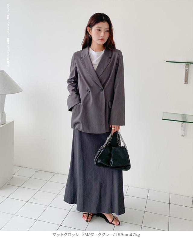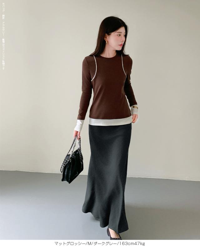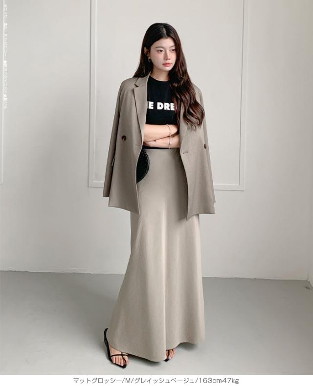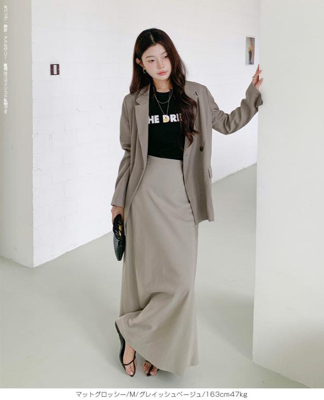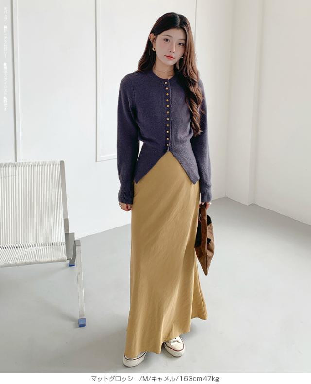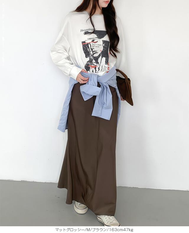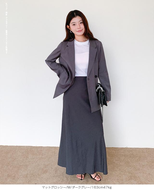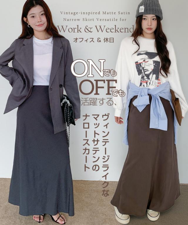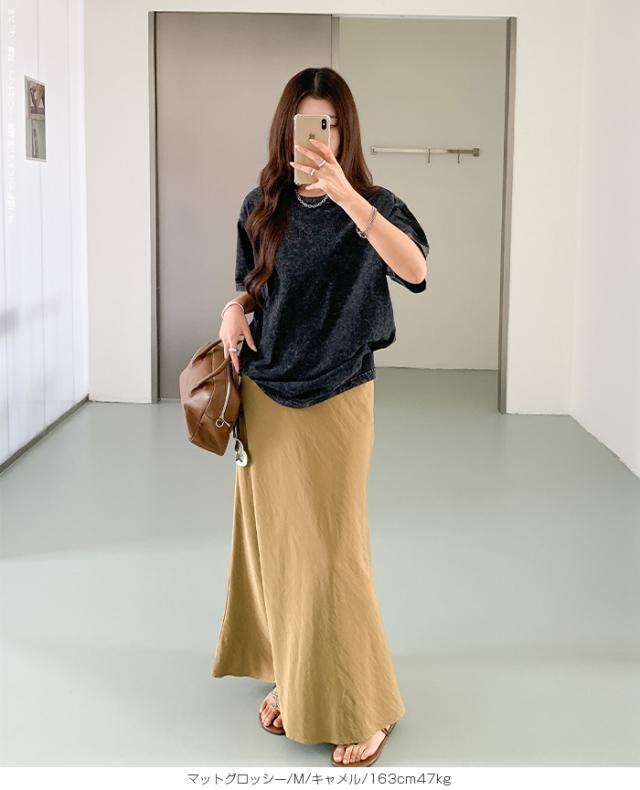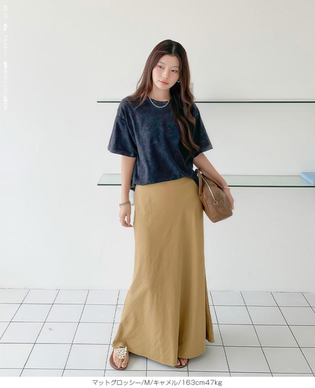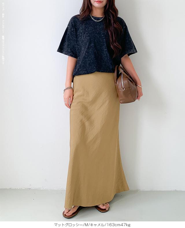 【 ヴィンテージサテンナロースカート 】 女性らしいマーメイドラインで美しいシルエットを 叶えるロングナロースカート。 光沢のある生地に加工を施し、 エレガントさとカジュアル感を兼ね備えた大人の一枚。 ウエストはゴム仕様で快適な着心地ながら、 高級感あるキュプラ風素材の落ち感が魅力です。 バイアス仕立てで体型をきれいにカバーし、 シンプルなTシャツと合わせれば春夏のデイリーに、 秋冬はブラウスやジャケットでオフィスカジュアルやきれいめコーデにマッチ。 シーズンレスに活躍する万能スカートです。 ホームケア可能でお手入れも簡単。 デイリーからお出かけ、通勤、ママコーデまで幅広く活躍します。 【素材感・着心地】 表面にあえて加工を施し、ほんのりとしたシワ感とマットな 質感でヴィンテージライクな雰囲気を演出。 上品な光沢を抑えた落ち着きのある表情で、 カジュアルにもきれいめにも合わせやすい仕上がりです。 マットな質感が肌に優しくなじむ心地よさを実現。 オールシーズンのスタイリングにマッチする万能素材です。 ※素材の特性上、シワが入りやすい生地となっております。 ご着用前や保管の際はスチームアイロン等で整えていただくと、 より美しいシルエットでお楽しみいただけます。 【シルエット・サイズ感】 バイアス仕立てにより、身体のラインに沿いながらも ピタッとしすぎない絶妙なフィット感。 女性らしいマーメイドラインのナローAラインスカートで、 縦長効果を強調しスタイルアップを叶えます。 流れるようなシルエットで体型カバー効果も高く、 M/Lサイズ展開でも幅広い体型にフィットするデザインです。 【着回し&コーデ提案】 シンプルなTシャツやスニーカーと 合わせれば抜け感のある大人カジュアルに。 ブラウスやジャケットを合わせればオフィスカジュアルやきれいめ コーデにアップデート可能。 秋冬はカーディガンやニット、ロングコートとも相性抜群で、 季節を問わず活躍します。 休日のお出かけ、通勤、旅行、ママコーデまで幅広く使える万能スカートです。 |
