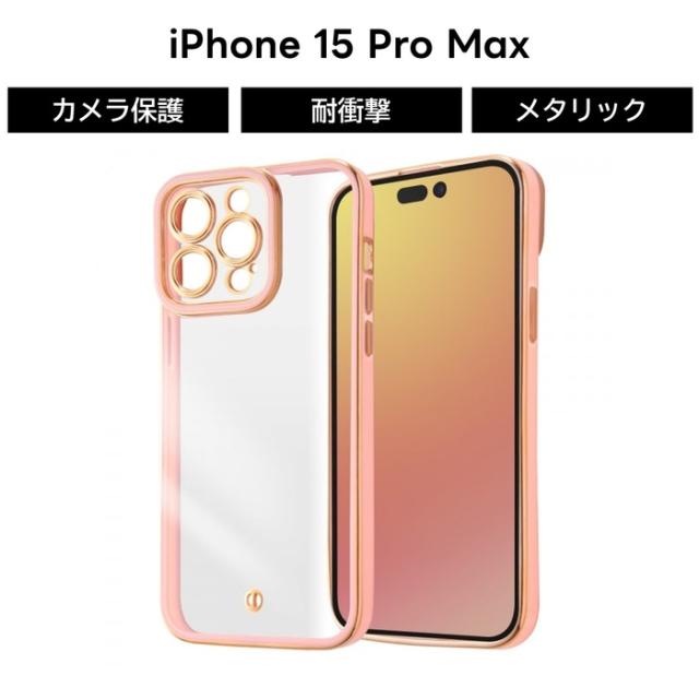 iPhone 15 Pro Max ケース クリア ピンク ゴールド アイフォン15Pro iPhone15Pro 耐衝撃 カメラ保護 ソフト ソフトケース スマホケース 透明 iPhone15ProMax