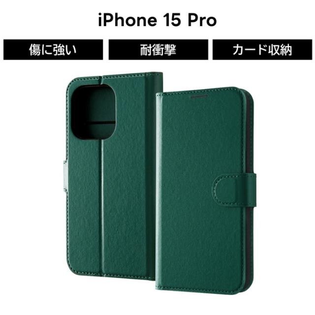 iPhone 15 Pro ケース 手帳型 シンプル グリーン iPhone15Pro 15Pro アイフォン15プロ 手帳型ケース 耐衝撃 ソフト ハード スマホケース カード収納