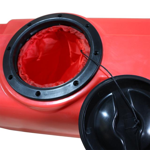 | フロートなのにハッチを装備! このまま小物入れとして使用も可能ですが、赤い袋を外してしまえばもっと大きい物や長い物などをフロート内に収納することも! | ハッチなどから水がフロートの中に入り込んでも安心! ドレン口が付いているので使用後に水を排出することができます。 |