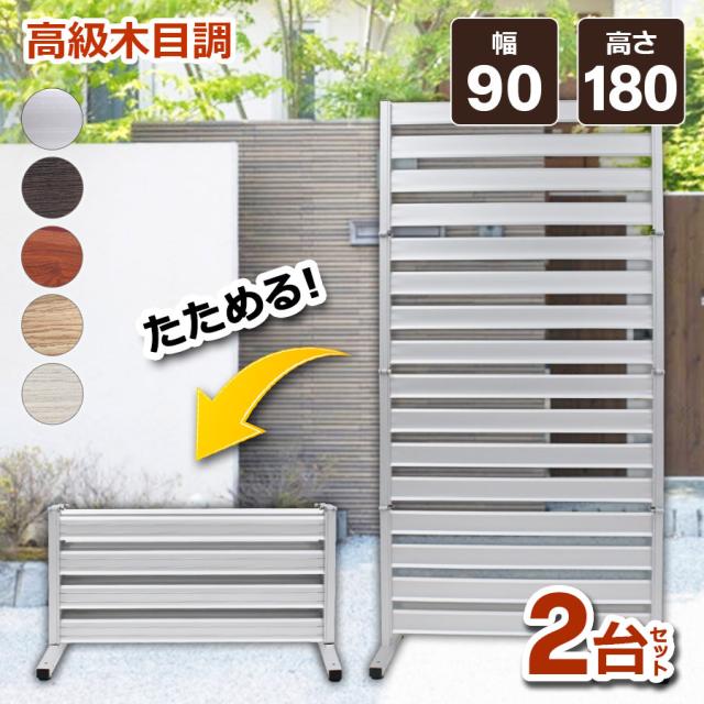 2台セット ALMAX アルマックス オレフェンス 【特許取得】 アルミ たためる フェンス 幅90×高さ180 木目調 ラティス DIY OF-0918