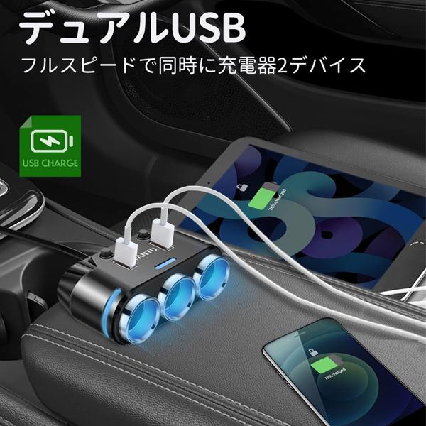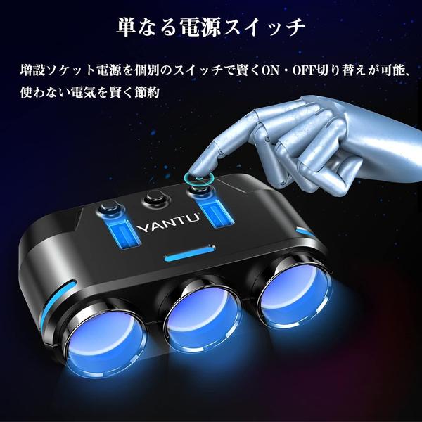最大で100Wのパワーを供給できるシガーソケットを3つに増設できます