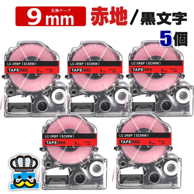 テプラ テープ 9mm 赤 黒文字 SC9RW 5個 互換 キングジム対応 強粘着 9mm テープ幅 赤地 / 黒文字 テプラPRO用 互換品 テプラ PRO 互換テープ 長さ 8m ラベルライター ラベルプリンター TEPRA PRO 用 互換テープカートリッジ お名前シール 名前シール テープ