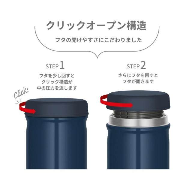 クリックオープン構造で開けやすく、口当たりがやさしい丸い口元が特徴。