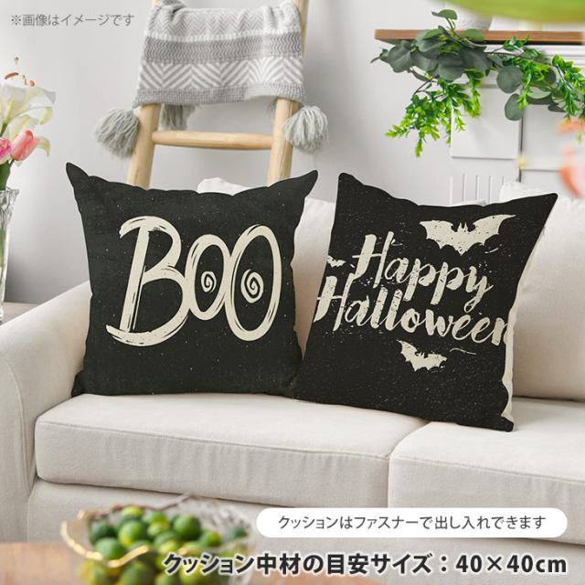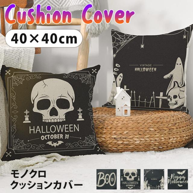 新作 【訳ありアウトレット】 選べる4柄 モノクロ ハロウィン クッションカバー カバー 40×40cm おしゃれ スクエア ファスナー クッション用カバー インテリア ディスプレイ かわいい 座布団カバー リビング