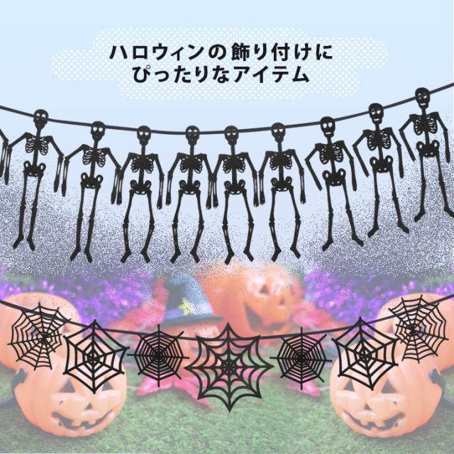 新作 選べる3タイプ ハロウィン モチーフ ガーランド ハロウィーン パーティー イベント グッズ 飾り 装飾 デコレーション キラキラ おばけ 幽霊 骸骨 蜘蛛の巣 コウモリ おしゃれ かわいい 自宅 家 室内 壁
