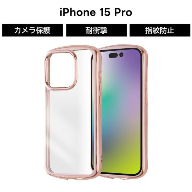 iPhone 15 Pro ケース クリア メタリック フレーム ピンク iPhone15Pro 15Pro 15プロ TPU 耐衝撃 ソフト ソフトケース スマホケース 透明