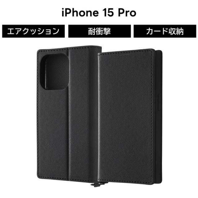 iPhone 15 Pro ケース 手帳型 シンプル ブラック iPhone15Pro 15Pro 15プロ 手帳型ケース レザー 耐衝撃 ソフト ハード スマホケース カード収納