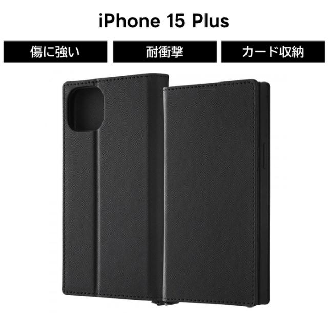 iPhone 15 Plus ケース 手帳型 シンプル ブラック iPhone15Plus アイフォン15プラス 15Plus 手帳型ケース ソフト ハード スマホケース カード収納
