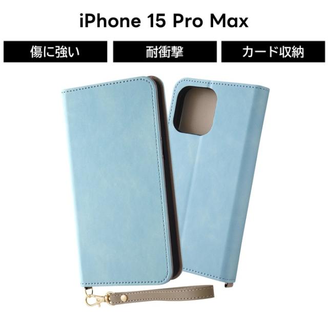 iPhone 15 Pro Max ケース 手帳型 ブルー iPhone15Pro 15Pro プロマックス レザー サラサラ 耐衝撃 手帳型ケース ソフト ハード スマホケース カード収納 iPhone15ProMax