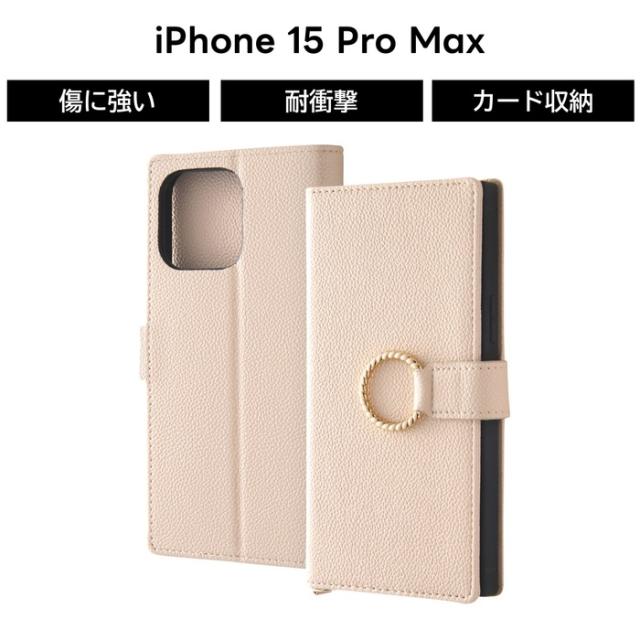 iPhone 15 Pro Max ケース 手帳型 スマホリング 付き ベージュ iPhone15Pro 15Pro プロマックス 手帳型ケース ソフト ハード スマホケース カード収納 iPhone15ProMax