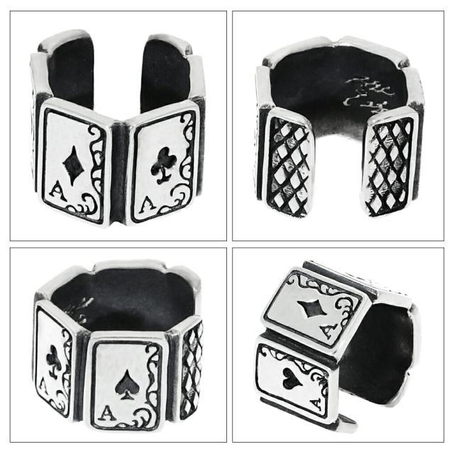 トランプのエースのカードをモチーフにしたイヤカフス。耳の上部あたりにつけることを前提にした形と大きさは使い勝手の良いデザインとなっている。好みのピアスと組み合わせて付けられる点がオススメ。