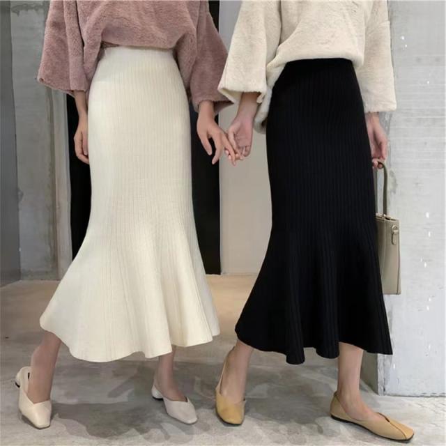 マーメイドスカート ニット ロング フリル ニットスカート リブニット リブ編み レディース ボトムス ロング丈 タイト マーメイド 黒 秋 冬 大人 きれいめ スカート フレアスカート ミディスカート